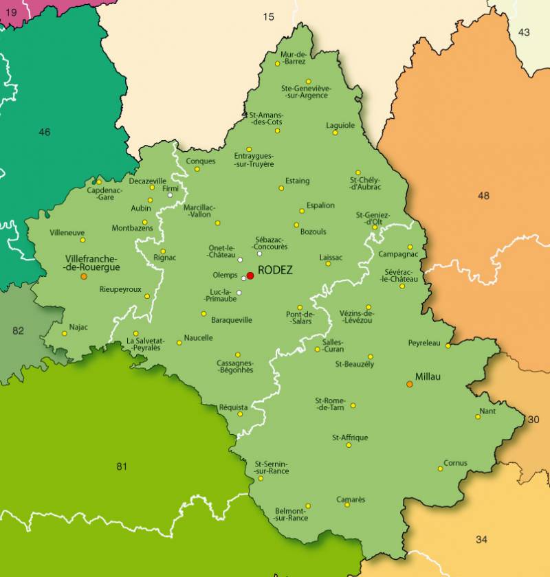 L’Aveyron est un département français situé dans la région Languedoc-Roussillon-Midi-Pyrénées, dans le Sud-Ouest de la France. Il prend le nom de la rivière Aveyron. Il est au centre d’un triangle formé par les villes de